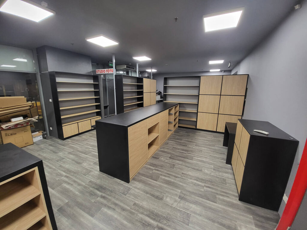 Kompleksowe wyposażenie sklepów: lady, witryny, regały, gabloty podświetlane i ekspozytory z grafiką. Twoja marka zasługuje na profesjonalną prezentację.